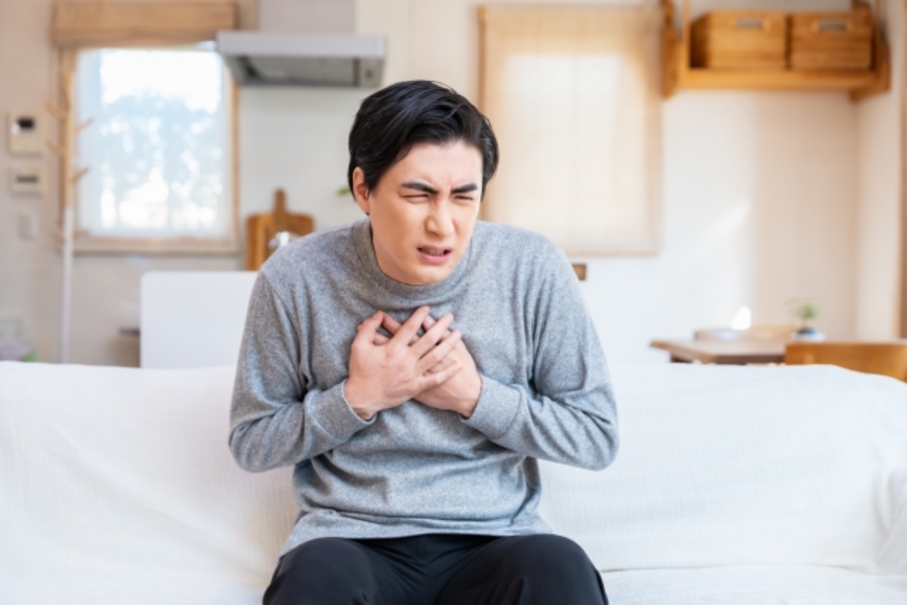 狭心症は、心臓に血液を送る冠動脈が動脈硬化などによって狭くなり、心筋に十分な酸素が届かなくなることで起こる虚血性心疾患です。主な症状は、胸の締め付けられるような痛みや圧迫感、胸部不快感で、階段昇降や運動時、寒冷時、精神的ストレス時など心臓に負担がかかった際に出現しやすいのが特徴です。通常は安静により数分で改善しますが、安静時や夜間・早朝に起こる場合は冠れん縮性狭心症の可能性もあります。