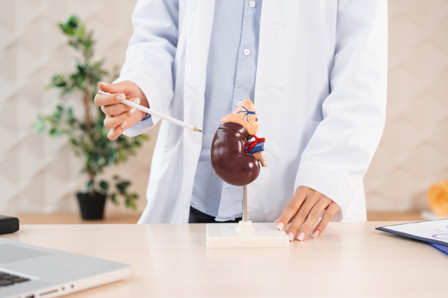 慢性腎不全は、腎臓の機能が長期間にわたり徐々に低下していく状態で、慢性腎臓病(CKD)の進行段階を含む疾患概念です。初期には自覚症状がほとんどありませんが、進行するとむくみ、倦怠感、食欲低下、吐き気、夜間頻尿、息切れ、高血圧などの症状が現れます。主な原因は糖尿病や高血圧、慢性糸球体腎炎などです。